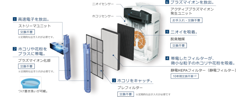 - Công nghệ ion plasma sử dụng phóng điện plasma để giải phóng ion vào trong không khí, kết hợp với các thành phần của không khí tạo thành các chất hoạt động với sức mạnh oxy hóa mạnh như gốc OH. Chúng sẽ bám vào bề mặt của nấm và các chất gây dị ứng và phân hủy các protein trong không khí bằng ôxy hóa